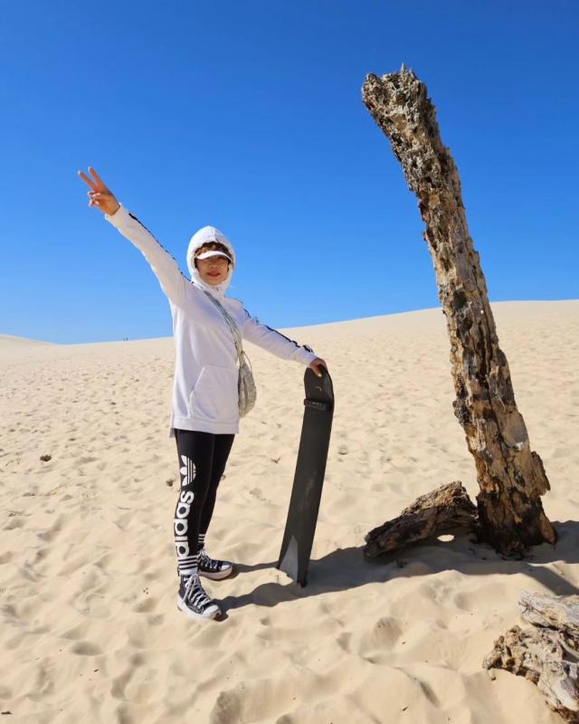 50대운동룩 여행패션 호주여행중 아디다스롱후드 아디다스삼선양말 컨버스런스타하이크블랙 모래설매타기 모자필수☝🏻️