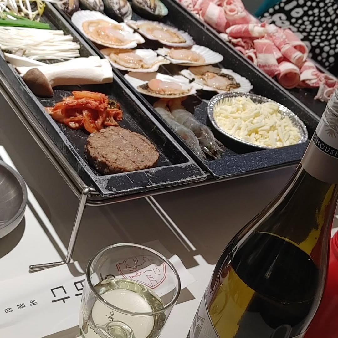 저희는 '우바다'의 시그니처 메뉴인 해물삼합구이를 주문했답니다. 🤩 보기만 해도 군침이 도는 신선한 전복, 가리비, 통오징어, 새우가 먹음직스러운 차돌박이, 아삭한 숙주, 향긋한 버섯과 함께 푸짐하게 나왔어요. ✨ 직원분께서 능숙한 솜씨로 직접 구워주시니 가장 맛있는 타이밍에 따뜻하게 즐길 수 있었답니다. 🔥