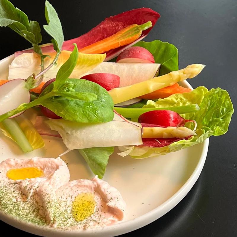 봄을 맞아 뮤땅의 시그니쳐 중 하나인 야채 디시에 변화를 주었습니다. 조금 더 부드러워진 명란딥에 봄을 알리는 야채들을 모아봤어요.