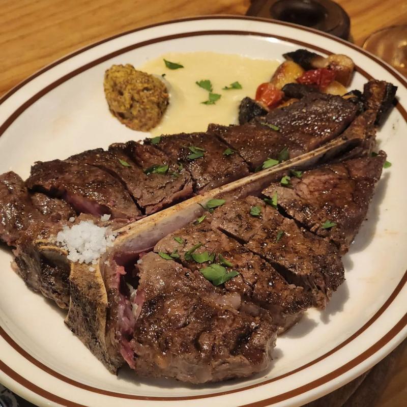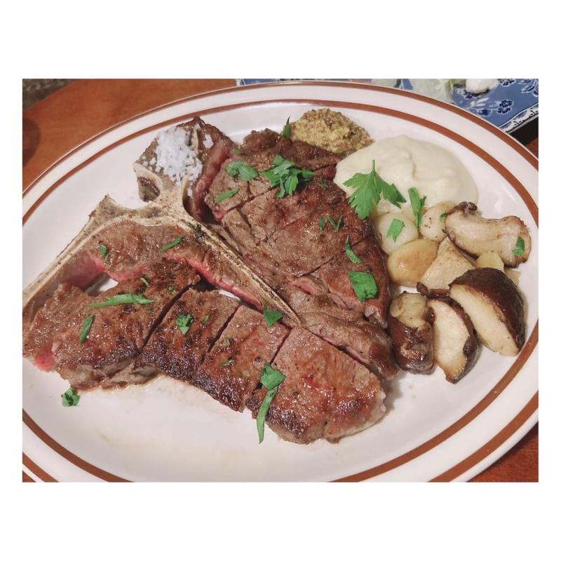 -티본스테이크: 숙성 한우로 구운 티본스테이크는 T자 모양의 뼈를 경계로 위쪽은 등심. 아래쪽은 안심. 두 부위를 동시에 즐길 수 있어 좋았어요. 피렌체 스타일처럼 500 이상의 두툼한 고기로 겉은 바싹 익히고 속은 부드럽게 익혔는데 크고 두툼한 비주얼이 몹시 아름다웠어요.ㅋㅋ가니쉬는 구운버섯과 썬드라이 토마토, 홀그레인 머스타드, 그리고 매쉬드 포테이토가 나왔는데 손으로 갈아만든 매쉬드포테이토의 서걱거림이 정말 맛이 좋았어요.