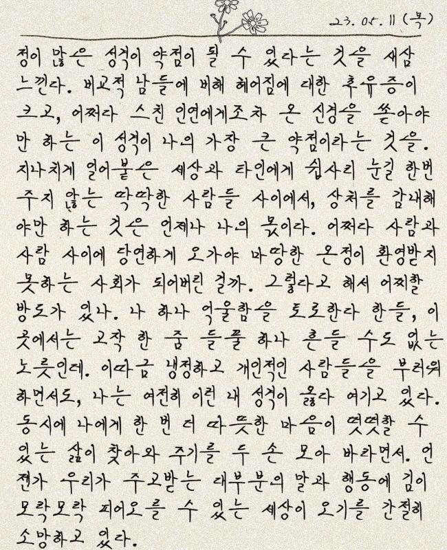 정이 많은 성격이 약점이 될 수 있다는 것을 새삼 느낀다.