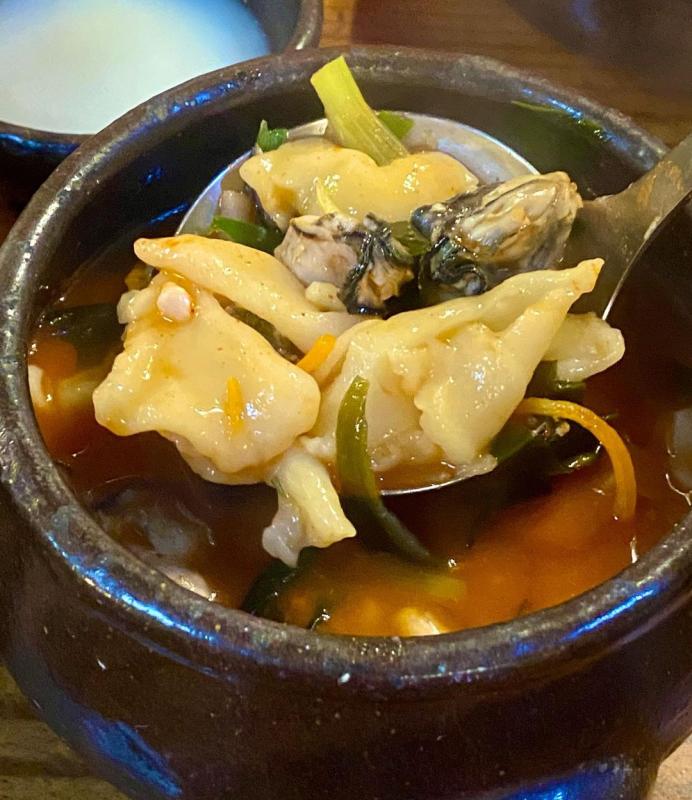국물은 보다시피 뽀얗고 수제비도 쫀득합니다! 제가 해산물을 되게 좋아하는데 많진 않지만 굴이 들어 있어 모랄까 국물이 좀 더 시원하구 더 맛있게 먹었네요😉