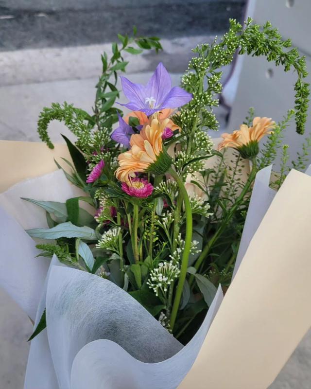 아내 생일을 축하하기 위해 선물을 준비하고, 케이크를 사고, 꽃다발이 빠지면 섭하니까 어디서 살까 하다가, 검색해보니 집근처에 골목쪽에 꽃집이 있었네.... 호오~~~~~! 그래서 문닫기 전 얼른 가서 꽃다발 하나를 만들어달라고 했다. 금방 뚝딱뚝딱.. 꾸미고 자르고 하시더니 예쁘게 완성!!