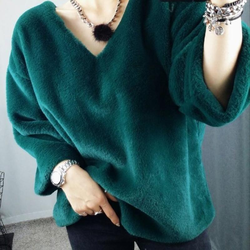 적당하게 파인 V넥으로폴라에 받쳐입어도 이쁘구요~V넥으로~라운드로~앞뒤로 입을수있어서연출해입기 좋은 스타일♡
