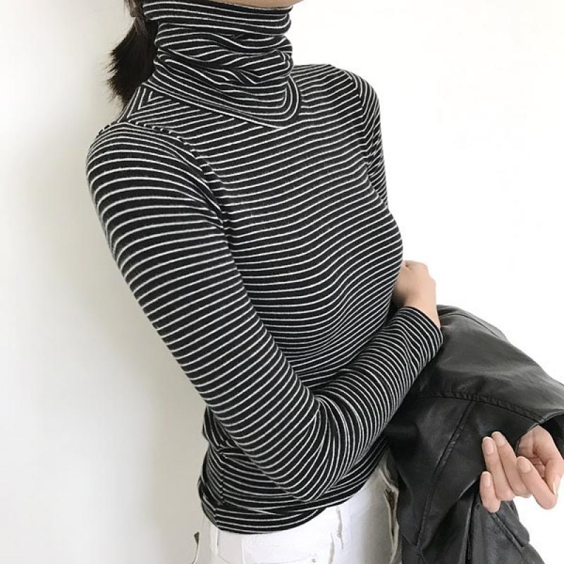 1 1 여성 목 폴라티 기모 이너 슬림
